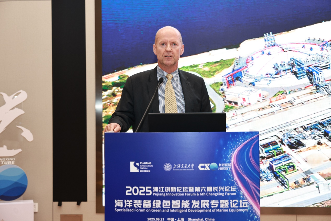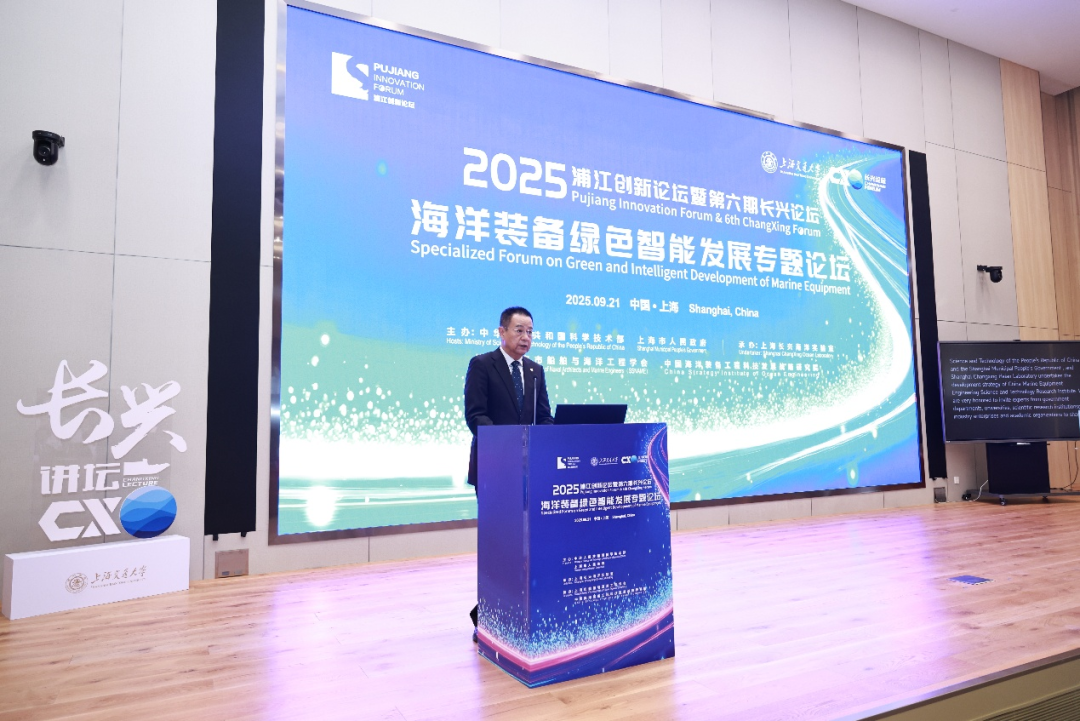 9月21日,“2025浦江创新论坛暨第六期长兴论坛——海洋装备绿色智能发展专题论坛”在上海长兴岛成功举行。本次论坛由科学技术部、上海市人民政府共同主办,上海长兴海洋实验室承办,上海市船舶与海洋工程学会、中国海洋装备工程科技发展战略研究院协办。上海市科学技术委员会二级巡视员郑广宏,中国工程院院士、长兴海洋实验室负责人林忠钦,上海交通大学副校长管海兵、校务委员会副主任翁震平等领导出席活动。中国工程院院士、长兴海洋实验室智能绿色水运设备与安全研究中心首席科学家严新平,上海交大海洋水下工程科学研究院有限公司董事长、特聘教授杨启,ABB集团船舶与港口事业部亚洲、中东及非洲区总经理Alf Kare Adnanes,DNV船级社副总裁兼业务发展总监Kvålsvold, Jan等中外专家学者出席论坛并作主题报告。论坛由上海海洋装备前瞻技术研究院院长、上海市船舶与海洋工程学会理事长邢文华主持。