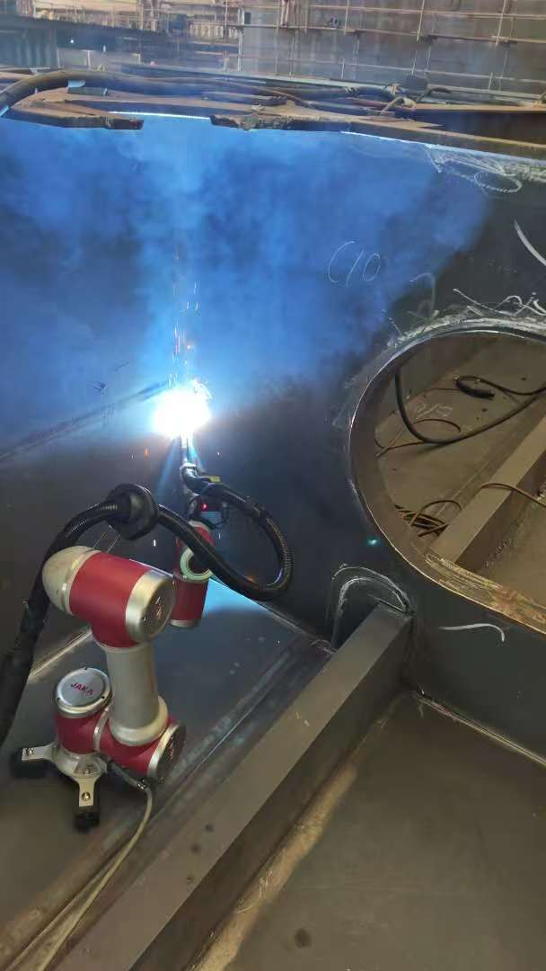 在启东中远7月、8月的现场测试中,项目团队与船厂技术人员同场作业,边试用、边调试、边优化,累计开展十余天高强度测试,系统梳理并解决了大间隙焊接焊缝成型差、焊枪作业半径小、移动小车越障能力差、视觉系统设备稳定性差等多项工程难题,持续完善焊接工艺参数库,推动科研团队实现算法快速迭代升级,真正将实验室技术转化为适应复杂船厂环境的可靠产品,产品技术先进性赢得船厂一致认可。