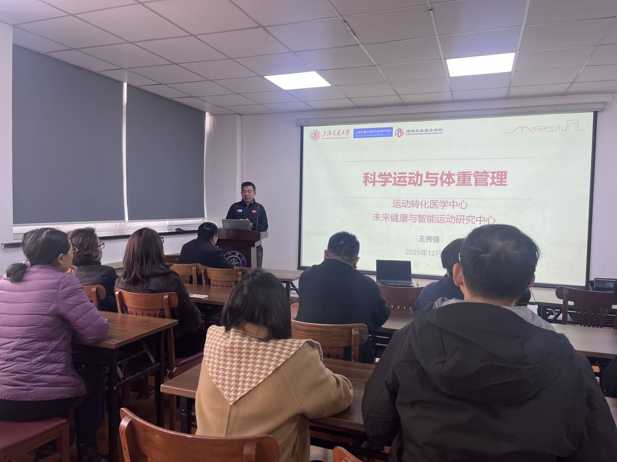 中午12点,A406会议室内座无虚席。上海交通大学转化医学研究院运动转化医学中心副主任王秀强老师以《科学运动与体重管理》为主题,为海科院职工带来了一场深入浅出的专题讲座。王老师开宗明义:“体重管理并非单纯的减肥,而是借助科学方法达成并维持健康体成分的过程。”他指出,体重管理应摒弃急功近利的“快速瘦身”观念,转而构建长期、可持续的健康生活方式。他结合最新科研数据,详细阐释了身体质量指数(BMI)、体脂率等关键指标的科学内涵,助力大家准确评估自身身体状况。讲座中,王老师着重强调了科学运动在体重管理中的核心地位。他分别从运动前的准备、运动方式的选择、运动时机以及运动量的掌控四个方面展开讲解。这场时长1小时的讲座干货十足,大家纷纷表示收获颇丰,对科学体重管理有了全新的认知。